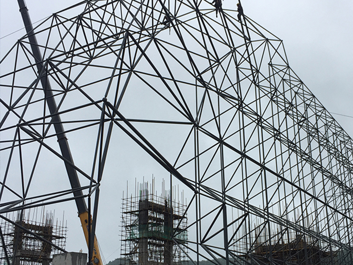 4.满堂脚手架是最有利的 螺栓球网架鄂州施工平台,它在确保鄂州施工安全的同时,又能承当部分网架重量,有效防止网格下沉变形,以及调整网架安装过程中的误差积累和支座与预埋件之间的偏离。